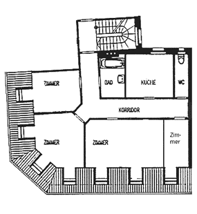 Sanft sanierter Altbau aus der Jahrhundertwende. Parkettböden, geschaltete Steckdosen in jedem Zimmer, Küche mit GKH und GS. Eigene Waschmaschine in der Wohnung. Kein Lift.